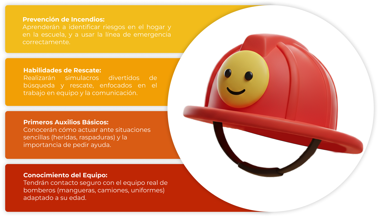 El curso Bomberitos es un programa educativo y recreativo diseñado especialmente para niños y niñas, nuestro objetivo es inculcar valores de disciplina, respeto y servicio a la comunidad, mientras aprenden de forma lúdica y segura las habilidades esenciales de un bombero.